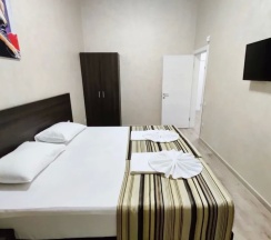 Понравилось: Расположение достаточно удобно, от моря минут 10. Можно считать 2-3 линия от моря. Питание хорошее, немного неудобно то, что обед и ужин на следующий день нужно заказывать заранее. Получается, что надо заранее знать, что ты будешь делать на следующий день. Хотя планы с утра могут измениться. Уборка качественная, девочки старались. Очень удобная фишка этого гостевого дома это пляжные сменные полотенца в отдельной сумке. Номер очень большой для троих, нешумный кондиционер. Спасибо администраторам, всегда вежливые и внимательные.