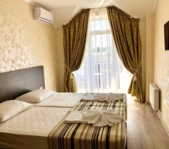 Понравилось: Расположение достаточно удобно, от моря минут 10. Можно считать 2-3 линия от моря. Питание хорошее, немного неудобно то, что обед и ужин на следующий день нужно заказывать заранее. Получается, что надо заранее знать, что ты будешь делать на следующий день. Хотя планы с утра могут измениться. Уборка качественная, девочки старались. Очень удобная фишка этого гостевого дома это пляжные сменные полотенца в отдельной сумке. Номер очень большой для троих, нешумный кондиционер. Спасибо администраторам, всегда вежливые и внимательные.
