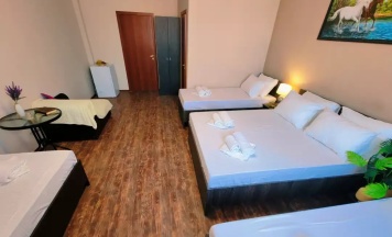 Большой светлый номер с возможностью комфортно разместить 5 человек.