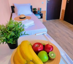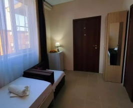 Всё чистенько басейн на территории хороший. Море рядышком. Столовая рядом прекрасная. Очень удобно. Кондиционер работает, холодильник в номере что очень удобно а так же душ и туалет в номере есть сушилка отдельная для белья.