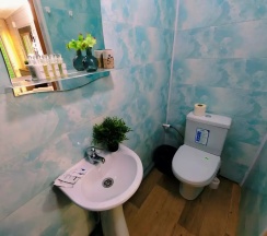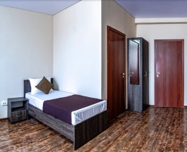 Уютный тихий двухместный номер с двуспальной или двумя раздельными односпальными кроватями, и прикроватными тумбочками. В номере расположены: кондиционер, шкаф, мини-холодильник, сушилка для белья. Вид из окна на соседний корпус.