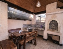 На небольшой территории отеля есть все для шашлыка, открытая кухня с полным набором посуды.