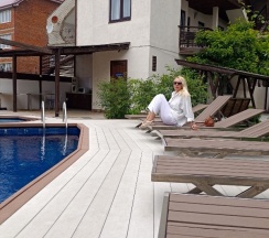 Понравилось: Отличная территория, теплый и чистый бассейн. До набережной минут 10-15 минут пешком, на автобусе до пляжа "Полярная звезда" минут 10 езды. Можно кушать на территории отеля: завтрак, обед, ужин и выпечка. Огромное спасибо за гостеприимство! Очень приветливые хозяева)