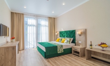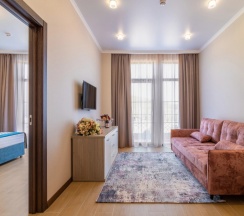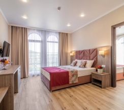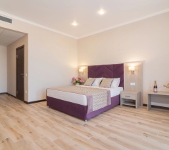 Отель шикарненький всё чистенько ,уютно со вкусом ,персонал вежливый всё расскажет,парковка есть места много .Номер полулюкс 1 этаж просто в восторге кровать удобная с/у просторный всё блестит!Есть большой бассейн удобные лежаки с зонтами.Еда вкусная .