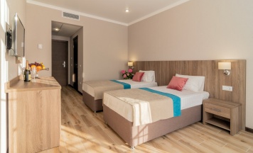 Красивый, новенький отель. Внимательный и вежливый персонал. Вид из окна сказочный, до моря близко.
