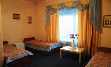 В номере имеется: три раздельные кроватями,балкон с видом на частный сектор,