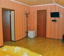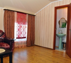В номере имеется: двуспальная кровать, прикроватные тумбочки, раскладной диван, санузел, умывальник, душ, спутниковое ТВ, холодильник с мини-баром, возможны доп.места