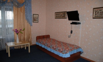 В номере имеется: одна односпальная кроватямь, сан.узел с душевой кабиной, спутниковое ТВ, холодильник-бар, шкаф-гардероб, зеркало, туалетные принадлежности (туалетная бумага, жидкое мыло), Фен, постельное белье.
