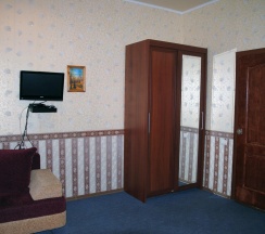сан.узел с душевой кабиной, спутниковое ТВ, холодильник-бар, шкаф-гардероб, зеркало, туалетные принадлежности (туалетная бумага, жидкое мыло), Фен, постельное белье.