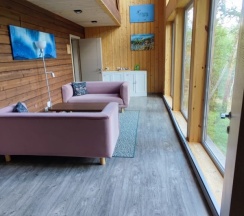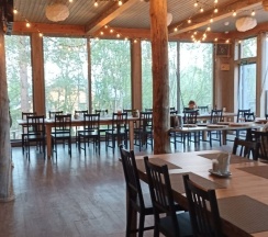 Проживала здесь в составе туристической группы с 12 по 15 августа 2024 года. Расположение отеля прекрасное, в лесу за городской чертой. Недалеко (20 минут пешком) расположено озеро. Отель представляет собой комплекс двухэтажных коттеджей с комфортными номерами. В каждом коттедже есть общая гостиная с панорамным остеклением. Отдельно расположено здание ресторана. По территории весело прыгают белки.