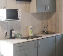 В номере есть все необходимое для комфортного проживания: двуспальная кровать, раскладной диван, кухня с посудой, микроволновкой, холодильником, а так же туалетная комната с душевой кабиной. Телевизор,Wi-Fi.