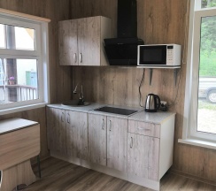 Для размещения предлагается два трехместных номера: с видом на озеро и с видом на лес. Номера оснащены всем необходимым для комфортного проживания: двуспальными кроватями, раскладными диванами, оборудованной кухней с техникой и посудой. Есть собственный душ и туалет.