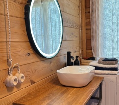 Сам домик очень уютный, чистый и комфортный. Внутри есть все необходимое для отдыха: удобные спальные места, хорошо оборудованная кухня, санузел с горячей водой, стиральная машина. Спасибо гостеприимным хозяевам за заботу! Вернемся еще!