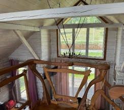 Провели несколько дней в этом домике, и остались в полном восторге! Он расположен на краю села с видом на лес и горы. Большие окна позволяют любоваться пейзажем прямо изнутри.