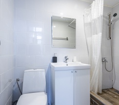Минусы: звукоизоляция отсутсутствует, подусташий немного ремонт и мебель, нет расходников, кроме т бумаги и жидкого мыла.