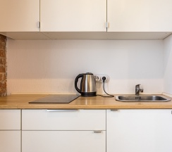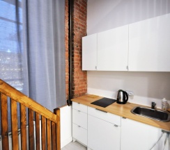 Понравилось: Понравилось, как и всем расположение апартаментов, центр, рядом - кафе-рестораны, пешеходные улицы, МХТ и т.д. Все в пешей доступности, удобная транспортная развязка. С сантехникой- все в порядке. Есть в номере инфракрасная панель с двумя конфорками, холодильник, чайник, набор посуды для двух человек.