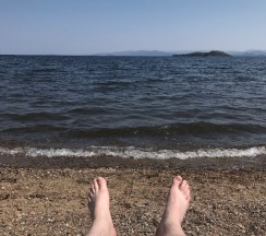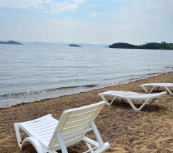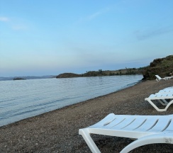 Берег у базы благоустроенный, удобные ступеньки, природный ландшафт и всегда свободные лежаки. Вход в воду комфортный, пологий. Как мне сказали, в этом заливе всегда теплая вода и это было для меня открытием года.