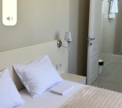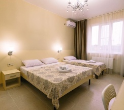 Снимала двухместный номер в этом отеле. Гостеприимные хозяева. Уютные номера. Встретили на вокзале, довезли до места. Дом новый, с новым свежим ремонтом. Приятно находиться. В номере был кондиционер, мини холодильник, телевизор, пастельное белье и полотенца. Всё в новом и идеально чистом состоянии. Есть кухня. Во дворе небольшой бассейн и детский уголок. Рекомендую