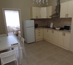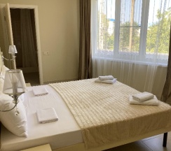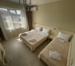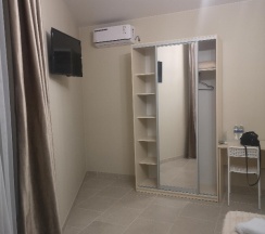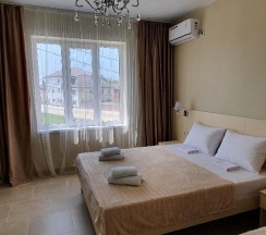 Отличный гостевой дом. Доброжелательные и отзывчивые хозяева. Дом новый, все в нем новое. Мы отдыхали в июле 2022г. Снимали 2 комнатные аппартаменты. В каждой комнате двухспальных кровати с ортопедическими матрасами. ЖК телевизоры шкафы, есть кухня в этом же номере. Все есть для готовки. Душ , туалет , кондиционер, в каждой комнате. На территории, игровой уголок, есть небольшой бассейн, мангал, столики и стулья. Магазины в шаговой доступности, на чистый пляж ездили на маршрутках. Можно и пешком дойти, но с маленьким ребенком прлще было ездить. Рекомендую, уютно, чисто, тихо. Спасибо за гостеприимство, нам все очень понравилось.