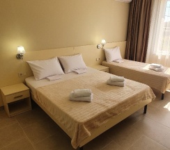 Отдыхали с семьёй, новая гостиница со всеми удобствами, хороший дизайнерский ремонт, все удобства в номере, кондиционер, телевизор, холодильник. Хозяева гостепреимные всё рассказали где какой пляж, столовая и т.д.Для отдыха с семьей отличное место👍