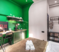 Очень хорошее впечатление, отличное расположение рядом с метро, рядом отличные кафе и ресторан, есть стиралка и сушильная машина, очень пригодился дежурный зонт!