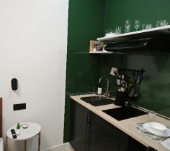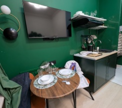 Очень комфортный отель. Удобная бронь, тихий район близко к метро. В номере есть все необходимое: продукты, фен, утюг , посуда, холодильник, чайник, плита, приборы, колонка Алиса, зонты, радиатор. Администратор всегда на связи . Белье чистое, мебель аккуратная , соседи тихие. Возвращаюсь уже второй раз и вернусь снова.