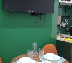 Очень хорошее впечатление, отличное расположение рядом с метро, рядом отличные кафе и ресторан, есть стиралка и сушильная машина, очень пригодился дежурный зонт!