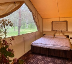 Сафари-тент с электричеством, освещением и обогревателем внутри для 4-5 человек. Две двуспальных кровати и одна односпальная