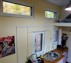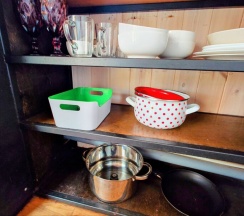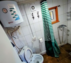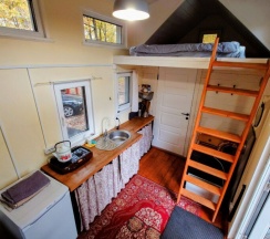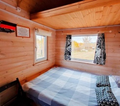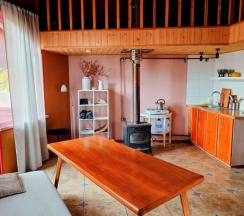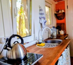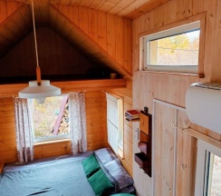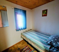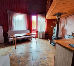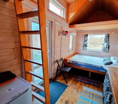 В доме есть небольшая кухня, холодильник, столовая посуда и посуда для готовки, 2 кровати шириной 160 см. (одна из них находится на втором свете), душ, туалет, стол.
