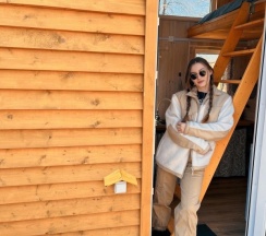 Это небольшой дом, 65 кв. метров. С одной спальней, антресолью и большим залом, террасой видом на горы, камином, сауной и проектором для ваших кино вечеров.