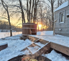 Домики расположены далеко друг от друга, возле каждого своя баня, и свой красивый вид с крылечка. Мы были в домике Экз с баней и в домике Лебовски с фурако. Обязательно приедем ещё!