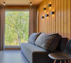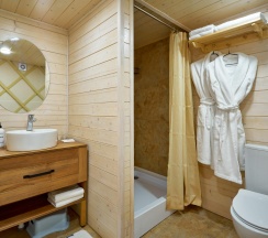 Размещение в комфортабельной круглогодичной юрте с ванной на ножках напротив панорамного окна и с невероятным видом на лес. Продуманный до мелочей дизайн. Терраса с шезлонгами и столиком. Кровати с ортопедическими матрасами (возможно размещение с двумя раздельными кроватями или одной двуспальной), белоснежное постельное белье и полотенца, халаты, собственный санузел внутри юрты (туалет, умывальник, душ), мини-кухня (чайник, индукционная плита, холодильник, посуда).