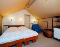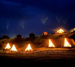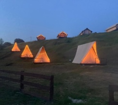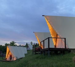 Три варианта проживания по степени комфорта палатки, шатры, домики.
