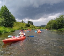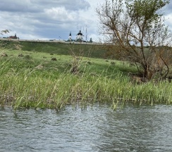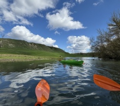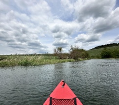 Мы уже имели опыт сплавления на байдарках в других городах и странах , но это место особенно осталось в наем сердце . По всему маршруту над нами пролетали цапли, открывались необыкновенные виды холмистых зеленых лугов с пасущимися коровами и овечками . Нам открылся вид на мужской монастырь 12 века, который выглядел как белокаменный Кремль .
