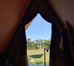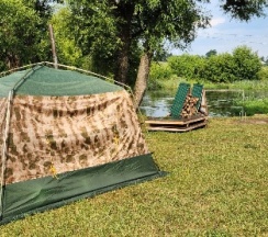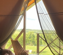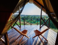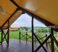 Шатёр с удобствами великолепен, с балкона открывается живописная панорама на русло реки.