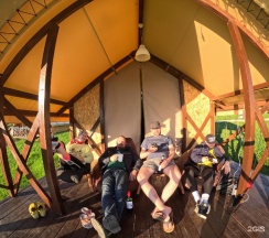 Хочу поделиться незабыааемым отдыхом в этом прекрасном месте. Нам был под ключ организован двухдневный корпоративный тур, с шикарным размещением в комфортабельных домиках, вкусным питанием, трансфером. Сплав на байдарках (практически для всех сотрудников этом было в первый раз) подарил огромное количество впечатлений, 17 км красивой Новосильской природы, переживания и поддержка друг друга, песни под гитару у костра, необыкновенные рассветы, очень интересный командообразующий квест с пиратами в поисках сокровищ ). Отдельное спасибо, конечно же руководству и всему персоналу гэмпинга за их отношение к своей работе и к своим гостям. Это было очень круто!