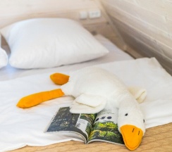Понравилось: У нас была отличная поездка, большой просторный дом, много комнат. Дом очень чистый, свежее белье, намытая посуда (тарелки, кружки, вилки, ножи). Убранная территория, есть гамак, деревянные качели. Идеально для большой компании. Рядом есть речка (она торфяная, но нам понравилась, можно поплавать). В лесу есть комары, лучше брать спрей, но на самой территории их нет.