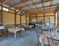 Есть летняя кухня, на которой куча разной посуды, что однозначно плюс, плита, холодильник, раковина - в общем для комфортной готовки есть абсолютно всё