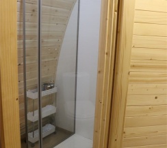 Домик уютный, очень необычный. Всё чистенько и аккуратно. Однако душ контрастный, видимо сильно зависит от использования воды ещё и в других домиках. Рядом с каждой "бочкой" находится мангал, классно тут пожарить шашлычки. Удобная верандочка.