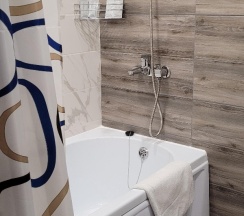 Далековато от центра, но зато рядом есть магазины, парк, остановка транспорта. По цене стандартный номер на 2 человека обошелся недорого.