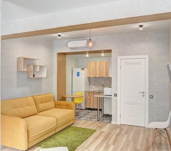 В номере: 1 двуспальный диван; шкаф; кондиционер; ванная комната с душем и туалетом, сушилкой для белья, собственная оборудованная кухня.