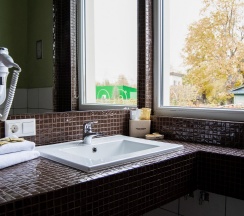 Просторные, удобные номера. Хороший вил из окон. Вдали от трассы и шума. Есть кафе, подземная парковка. Адекватное соотношение цены и качества!