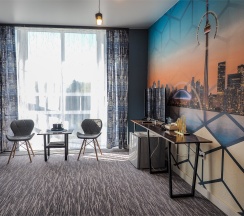 Очень понравилось все. Сам номер небольшой, но просторная ванная комната и выход на террасу. Рядом озеро Лахтинский разлив и Лахта-центр через дорогу. Магазинов в округе нет, но на ресепшен можно купить воду. Ресторан хороший.
