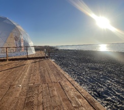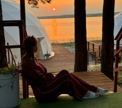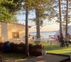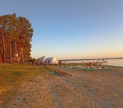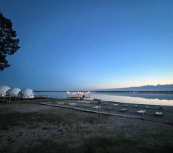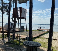 Второй раз уже на этой базе, первый раз приехали без детей с палатками и были в восторге! Какое красивое большое озеро, а закаты просто шикарные, песочек, маленькие козочки и кролики) идеально кататься на сапах ! Второй раз приехали с детьми и дети счастливые! Маленький играет в песочек, старшая лазает на веревочном парке и в этот раз мы в домике купол) будем вечером ждать ежиков, а утром белочек☺️