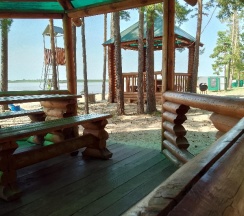 Отличное место для отдыха в друзьями или семьей! Вокруг такая красота! Большое озеро, где можно и купаться и кататься на сапе! Есть туалеты! И можно как с палатками, так и домик забронировать! Или просто беседку на день и даже сходить в баню )
