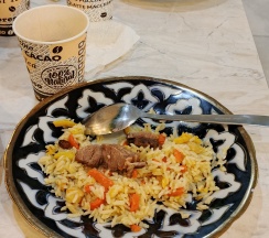 При гостинице есть ресторан, там очень вкусная еда.