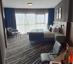 Для своей цены неожиданно хорошо: большой номер, есть все необходимые мелочи, сауна, хамам, спортзал. Приличный завтрак, бутылка сидра в подарок. С балкона - вид на горы.