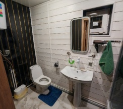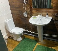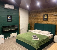 Понравились домики . Кресло качалка и камин электрический создают антураж приятный . В жаркую погоду хорошо бы чтобы кондиционер был . А так все отлично . Завтрак отличный вкусный . В домике есть сауна , но она оплачивается отдельно .