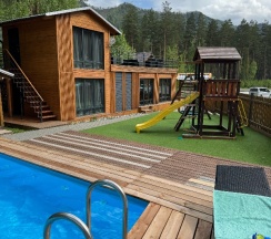 Летом бассейн, детская площадка. Мы брали домик, как раз под нашу компанию. Тепло, чисто, уютно. Находится прям в центре, рядом продуктовый магазин и основные локации отдыха.