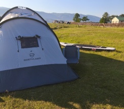 Жили в палатках 4 дня, всё устроило, туалет есть... лучше чем в лесу, вода из крана, Байкал в 2 мин. ходьбы.